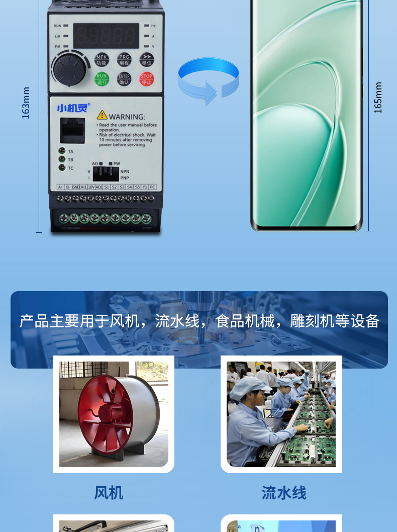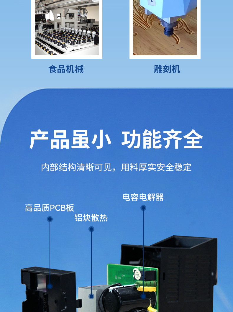 產(chǎn)品主要用于風(fēng)機(jī),流水線,食品機(jī)械,雕刻機(jī)等設(shè)備