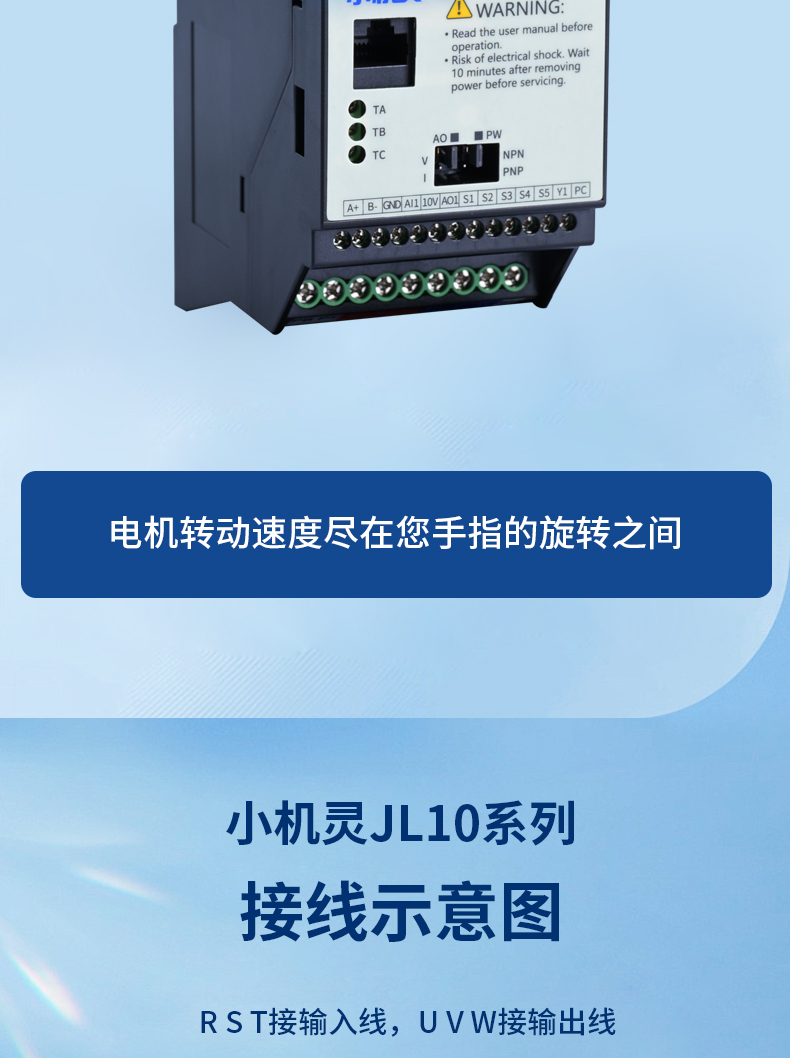 JL10變頻器新品上市,處處是升級(jí),產(chǎn)品身材更小,正面觀看和一部普通智能手機(jī)的大小相似。產(chǎn)品雖小,功能齊全。多功能端子接口可聯(lián)機(jī)/可聯(lián)網(wǎng),產(chǎn)品外殼采用阻燃材料,耐高溫。