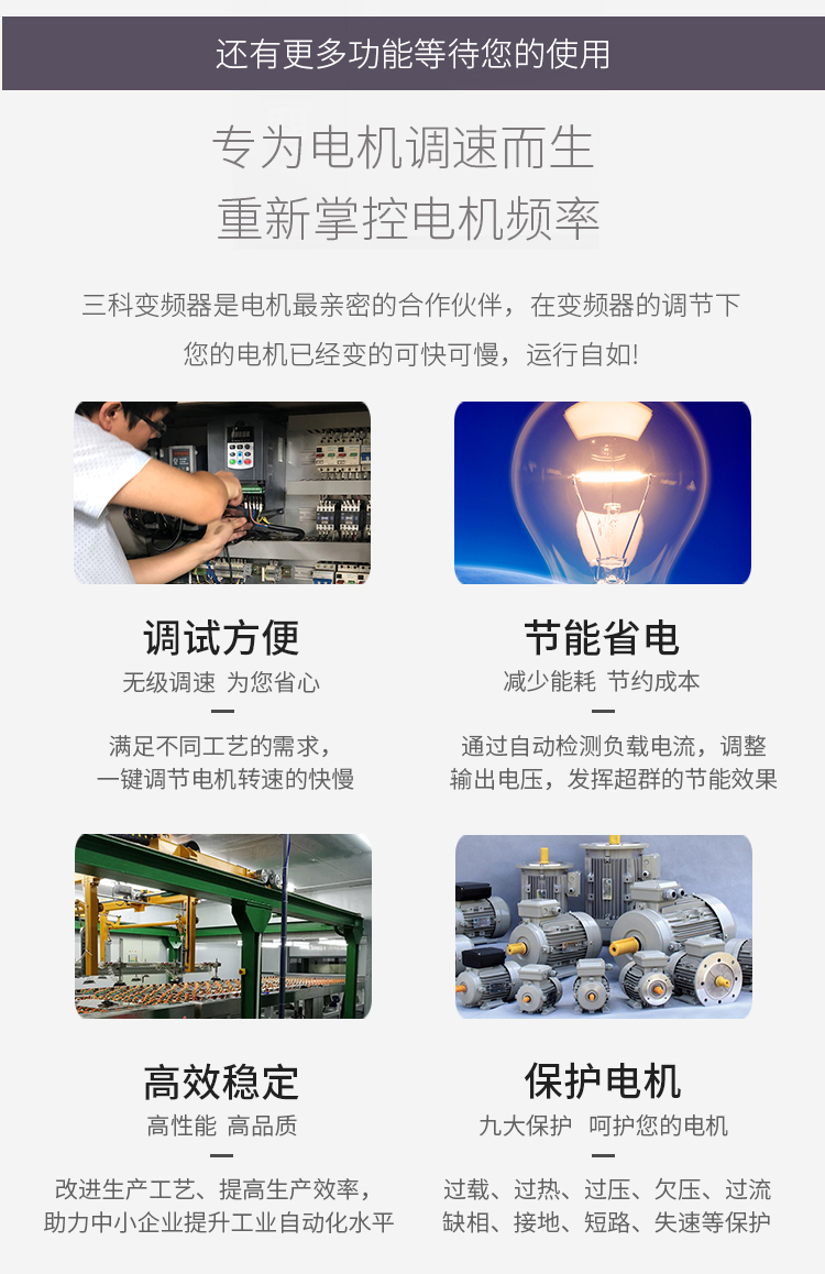 三科變頻器可廣泛應(yīng)用在風(fēng)機(jī)、水泵、環(huán)保,空壓機(jī)、注塑機(jī)、卷繞機(jī)、中央空調(diào),紡織機(jī)、化工、冶金、礦業(yè)、制藥、陶瓷、造紙、油田、塑料、印刷、熱電、煙草、食品等各類機(jī)械設(shè)備中。