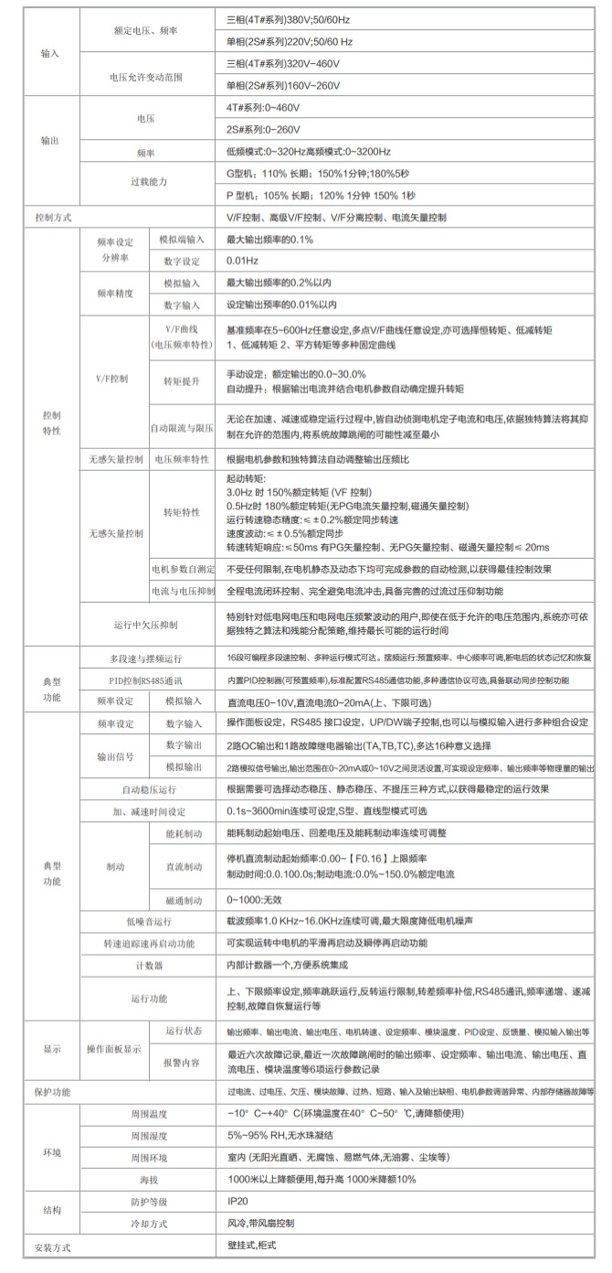 ●全方位的過流、過壓、過載保護(hù)及失速防止功能;