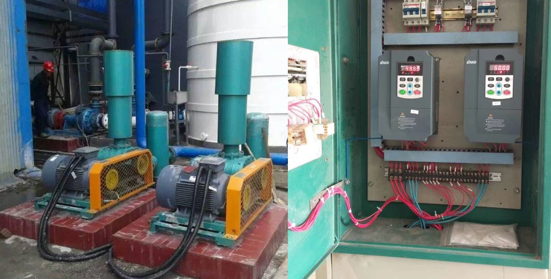 5.降低變頻控制柜噪音:根據(jù)電機(jī)的工作情況,安裝變頻控制器后,電機(jī)運行速度明顯減慢,有效降低了電機(jī)運行時的噪音。