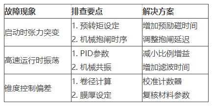 建議每6個月進行一次系統(tǒng)校準,包括張力傳感器標定、卷徑計算驗證等維護項目。對于特殊材料(如超薄膜、彈性基材等),需重新優(yōu)化錐度系數(shù)和PID參數(shù)。