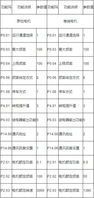 本文僅以杭州三科生產(chǎn)的SKI600通用重載變頻器(VFD)在某地企業(yè)中的化纖分絲機(jī)的現(xiàn)場(chǎng)調(diào)試項(xiàng)目?jī)?nèi)容為主體,為大家闡述變頻技術(shù)在化纖分絲機(jī)中的應(yīng)用方案,如上所示。客戶希望通過使用兩臺(tái)SKI600(0.75KW),一臺(tái)控制超喂羅拉電機(jī),一臺(tái)控制收卷電機(jī),另外每5臺(tái)設(shè)備需要一個(gè)SKI600(0.75)控制頂輪電機(jī),步進(jìn)控制器控制移絲成型,每圈單脈沖霍爾元件用來測(cè)速,要求主要包括: