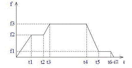(4)第四階段 t3~t4:重車以頻率為f3的最大速度穩(wěn)定運(yùn)行,一般,這段過程最長(zhǎng)。