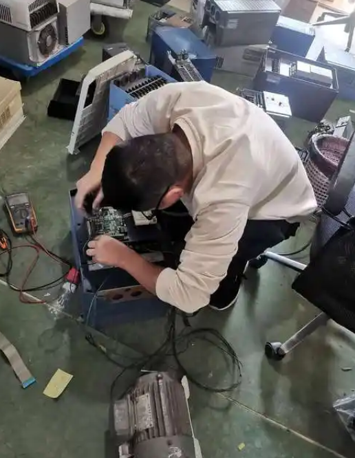 維修流程:首先將變頻設(shè)備完全拆解,拆下冷卻通道的翅片,用壓縮空氣清潔翅片,清潔設(shè)備所有內(nèi)部結(jié)構(gòu)和板卡。安裝igbt模塊。安裝igbt模塊時(shí),根據(jù)模塊要求依次安裝,扭矩適中。修復(fù)觸發(fā)電路,然后依次安裝其他裝置。安裝完成后,進(jìn)行靜態(tài)測試。靜態(tài)測試結(jié)果良好后,進(jìn)行通電測試和皮帶負(fù)載測試。用負(fù)載通過了測試,順利完成了維護(hù)。