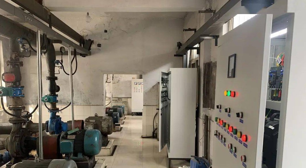某地電廠的綜合泵房共有9臺水泵,其中有3臺工業(yè)水泵,2臺消防穩(wěn)壓泵,2臺消防泵,2臺生活水泵。而工業(yè)水泵承擔(dān)著我公司兩臺5萬KW汽機,兩臺額定蒸發(fā)量220T/H鍋爐生產(chǎn)用水的供水任務(wù),工業(yè)水泵的型號:250SSK468/54,流量:468m3/h,揚程54米,轉(zhuǎn)速1470 r/min,配用功率110KW;配用電機型號Y315S-4B3,電壓380V,電流201A,轉(zhuǎn)速1480 r/min.建廠初期由于設(shè)計問題,全部采用工頻運行。為了保證生產(chǎn)的可靠性,各種水泵在設(shè)計配用動力驅(qū)動時,都留有一定的富余量。電機不能在滿負(fù)荷下運行,除達(dá)到動力驅(qū)動要求外,多余的力矩增加了有功功率的消耗,造成電能的浪費,