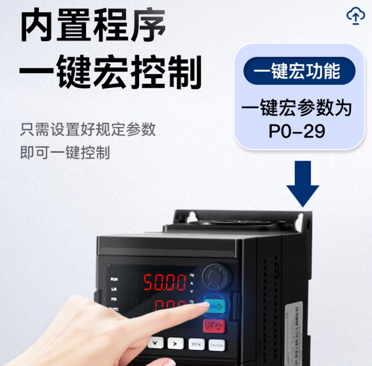 預(yù)置多種應(yīng)用宏,包括恒壓供水、一拖多泵控制、消防巡檢、數(shù)控機(jī)床、雕刻機(jī)高速主軸等,極大簡化調(diào)試流程,提升設(shè)備集成效率。