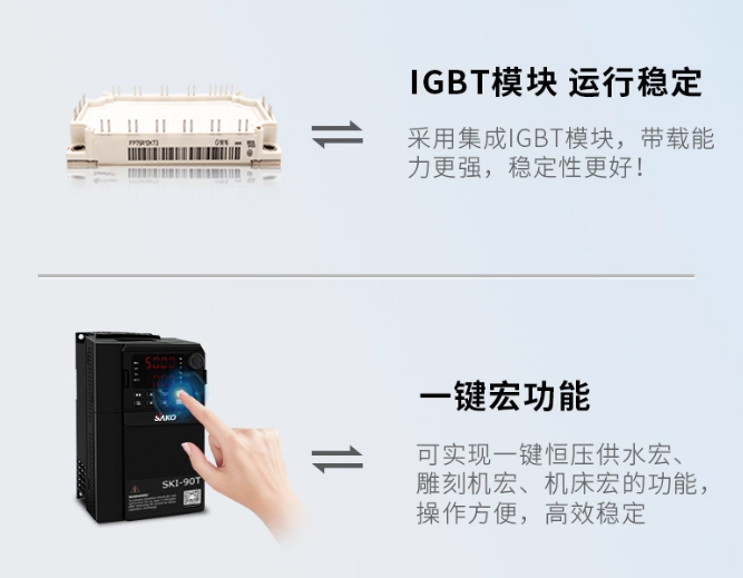 一鍵宏功能,支持恒壓供水、雕刻機(jī)、機(jī)床等多種預(yù)設(shè)模式,操作簡便,高效穩(wěn)定。